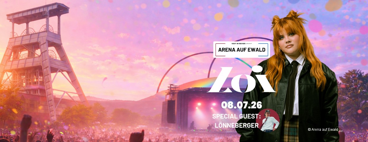 Ein Sommerabend voller emotionaler Popmusik: Am 8. Juli 2026 steht LOI live auf der Bühne der Arena auf Ewald in Herten. Mit ihrer unverwechselbaren Stimme und Songs wie „Gold“, „News“ oder „Am I Enough“ hat sich die Sängerin aus Mannheim in kurzer Zeit ein Millionenpublikum erspielt und gehört zu den spannendsten jungen Pop-Acts Deutschlands.