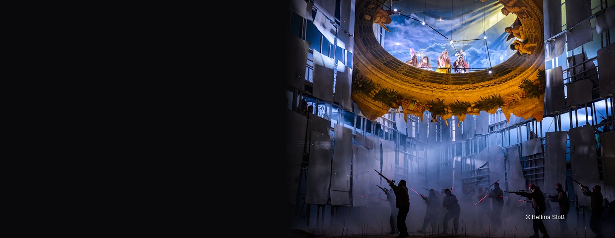 Der französische Komponist Pascal Dusapin machte 2015 aus Kleists Trauerspiel eine Oper über Gewalt und Krieg, Trauma und Besessenheit — und die utopische Möglichkeit, all das in liebevoller Begegnung zu überwinden. In eindringlichen, aufs Wesentliche konzentrierten Szenen folgt die Musik den tiefsten Ängsten, Sehnsüchten und Aggressionen der beiden Hauptfiguren, dringt ins Innere der Körper vor und lässt uns gleichzeitig den äußeren Kampf verfolgen.