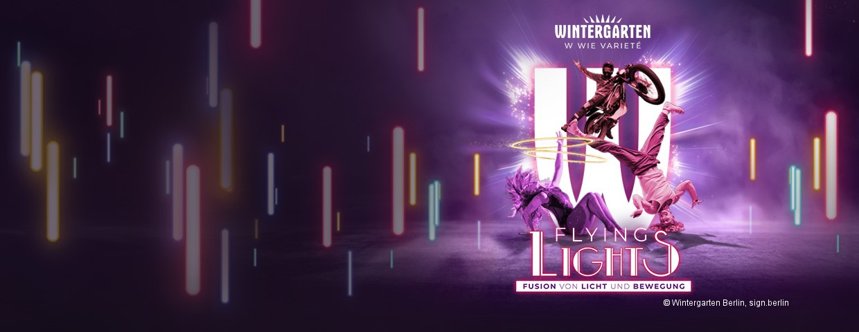 Nach dem fulminanten Erfolg der bahnbrechenden ersten Kooperation in 2022 („Flying Dreams“) werden die Flying Steps erneut in einer jugendlich energiegeladenen, modern choreografierten und mit reichlich High Tech in Szene gesetzten Fusion-Show FLYING LIGHTS auf vom Wintergarten passend dazu international gecastete Top-Artisten treffen – und mit Verve und Coolness die Berliner und Gäste aus aller Welt überraschen und begeistern.